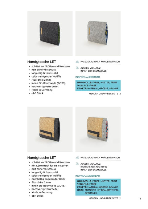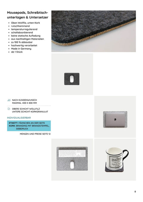 Tutustu huovasta, korkista ja puuvillasta valmistettujen kestävien promootiotuotteiden monipuolisiin mahdollisuuksiin ja näytä esimerkkiä ympäristönsuojelusta ja oikeudenmukaisuudesta. Ota yhteyttä jo tänään saadaksesi lisätietoja ja tehdäksesi tilauksesi. Yhdessä voimme vaikuttaa myönteisesti ympäristömme suojeluun ja samalla menestyksekkäästi mainostaa yritystäsi.
