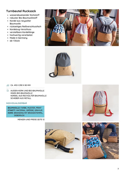 Huopamme tulee saksalaiselta valmistajalta, joka työskentelee vain luotettavien paimenten kanssa. Korkki ja korkkimateriaali tulevat Portugalista kestävästä metsätaloudesta. Säännöllisesti korjattu korkkitammi sitoo 3 kertaa enemmän hiilidioksidia kuin ilman korjuuta. Luomupuuvillamme on GOTS-sertifioitua.